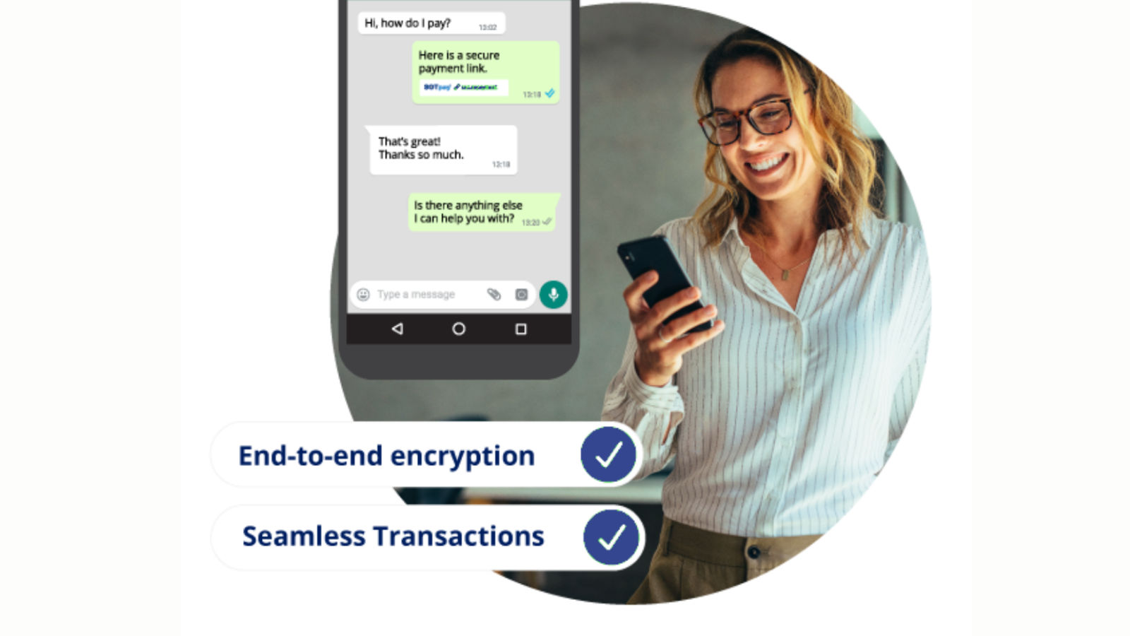 ChatPay Secure allows businesses to send secure payment links directly within WhatsApp and messaging conversations. Customers complete transactions without leaving the chat, improving response times while maintaining secure authentication and PCI compliant payment handling.